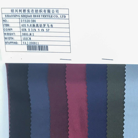 40 एस एन/आर रोमा वोर्टेक्स चीन कारखाने अनुकूलित थोक वस्त्र 65/31/4 आर/एन/स्पैन रोमन कपड़े